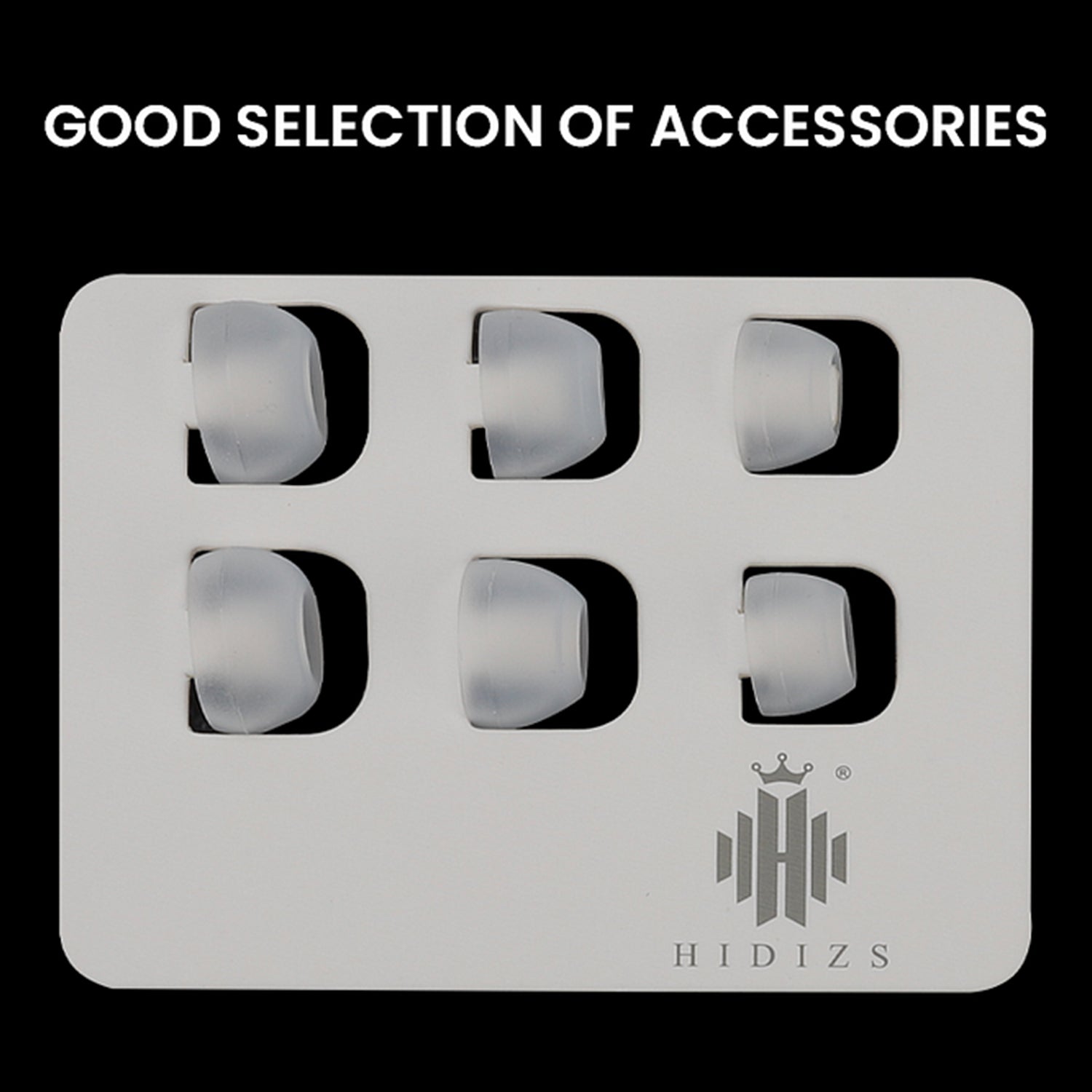 The custom earphone carrying box is a sincere gift from HIDIZS. High-quality metal panel, built-in full-surrounding silica gel for effective shock and drop resistance. Magnetic closing mechanism keeps the IEMs in place.