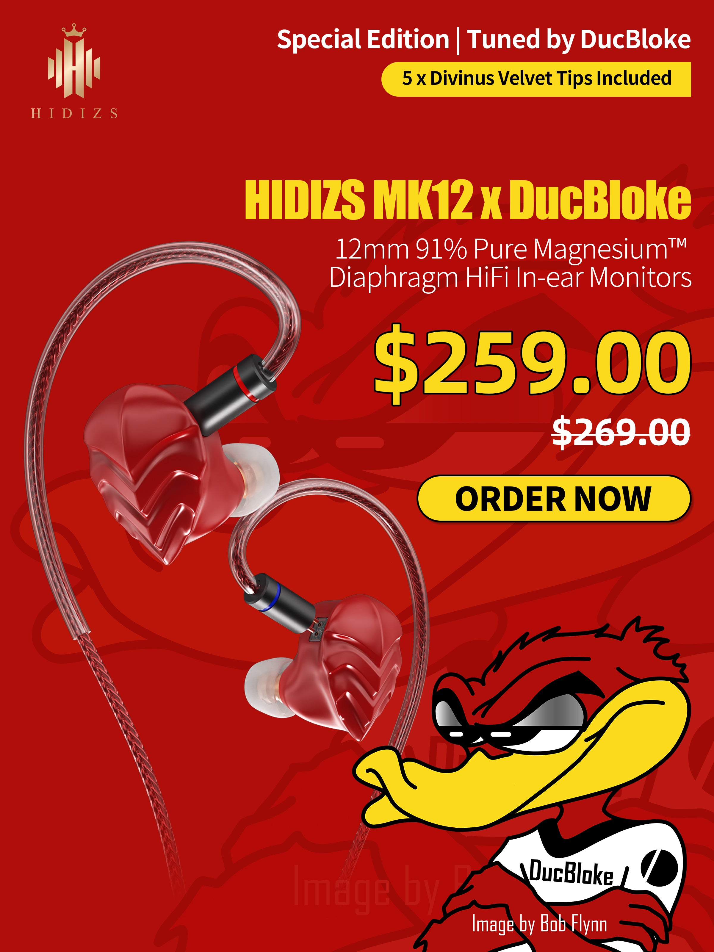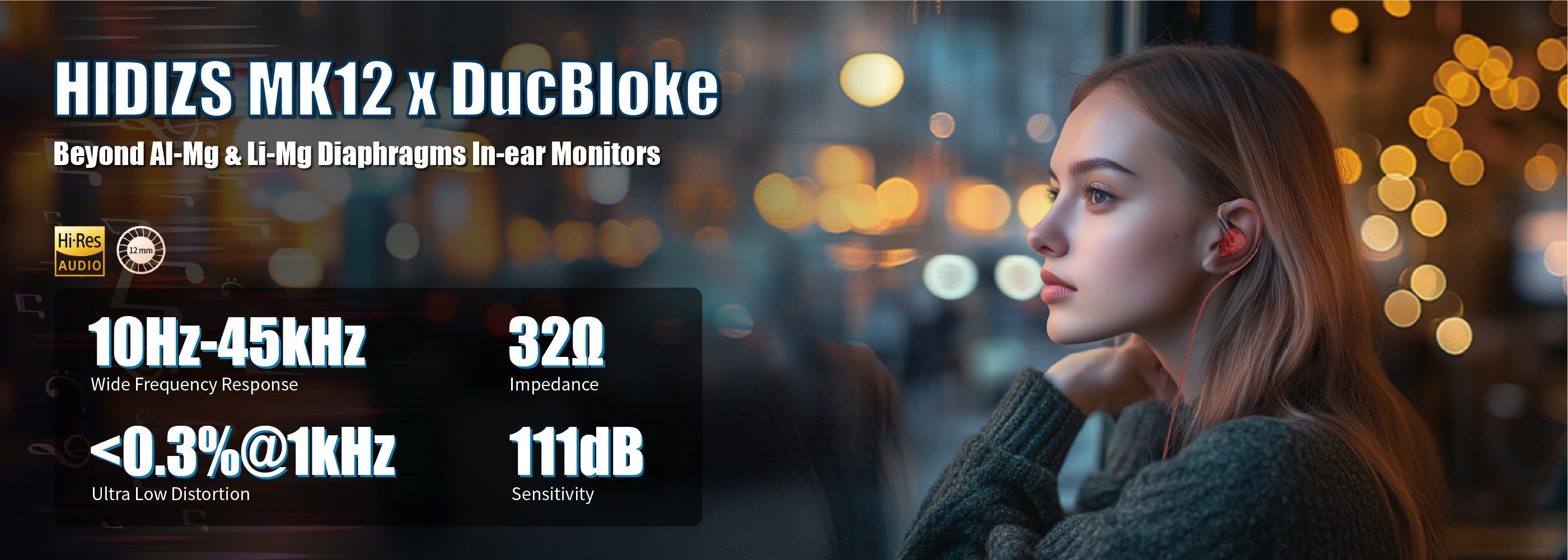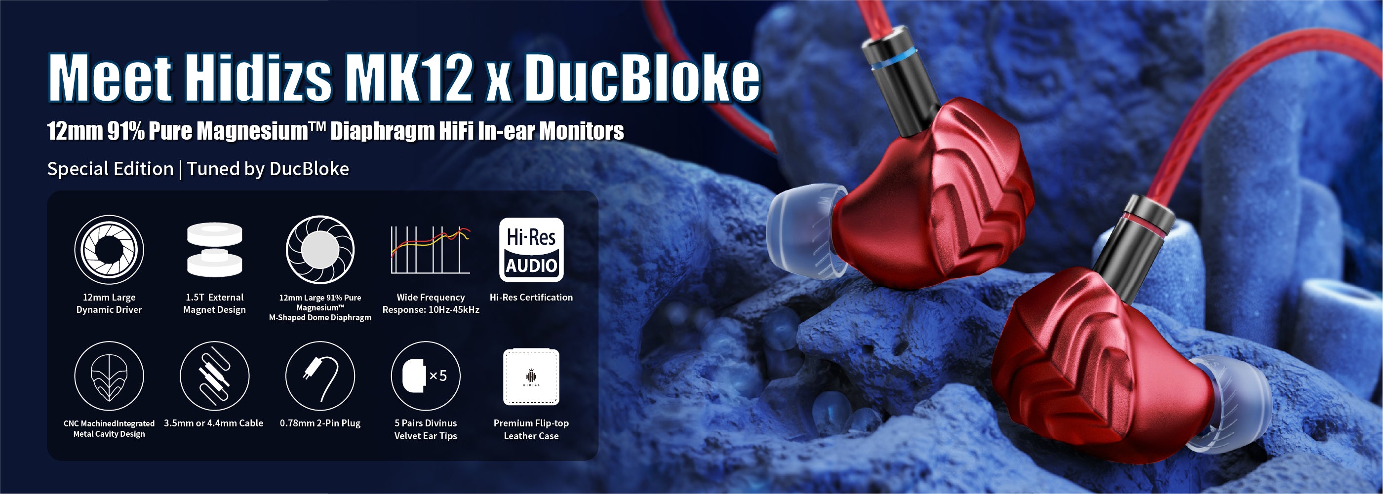 We are proud to introduce the Hidizs MK12 × DucBloke, the first co-branded collaboration in our MK line. Built on the acclaimed MK12 platform with a 12 mm dynamic driver and a 91% pure magnesium diaphragm, this limited-edition model represents a shared pursuit of musicality, precision, and artistry.