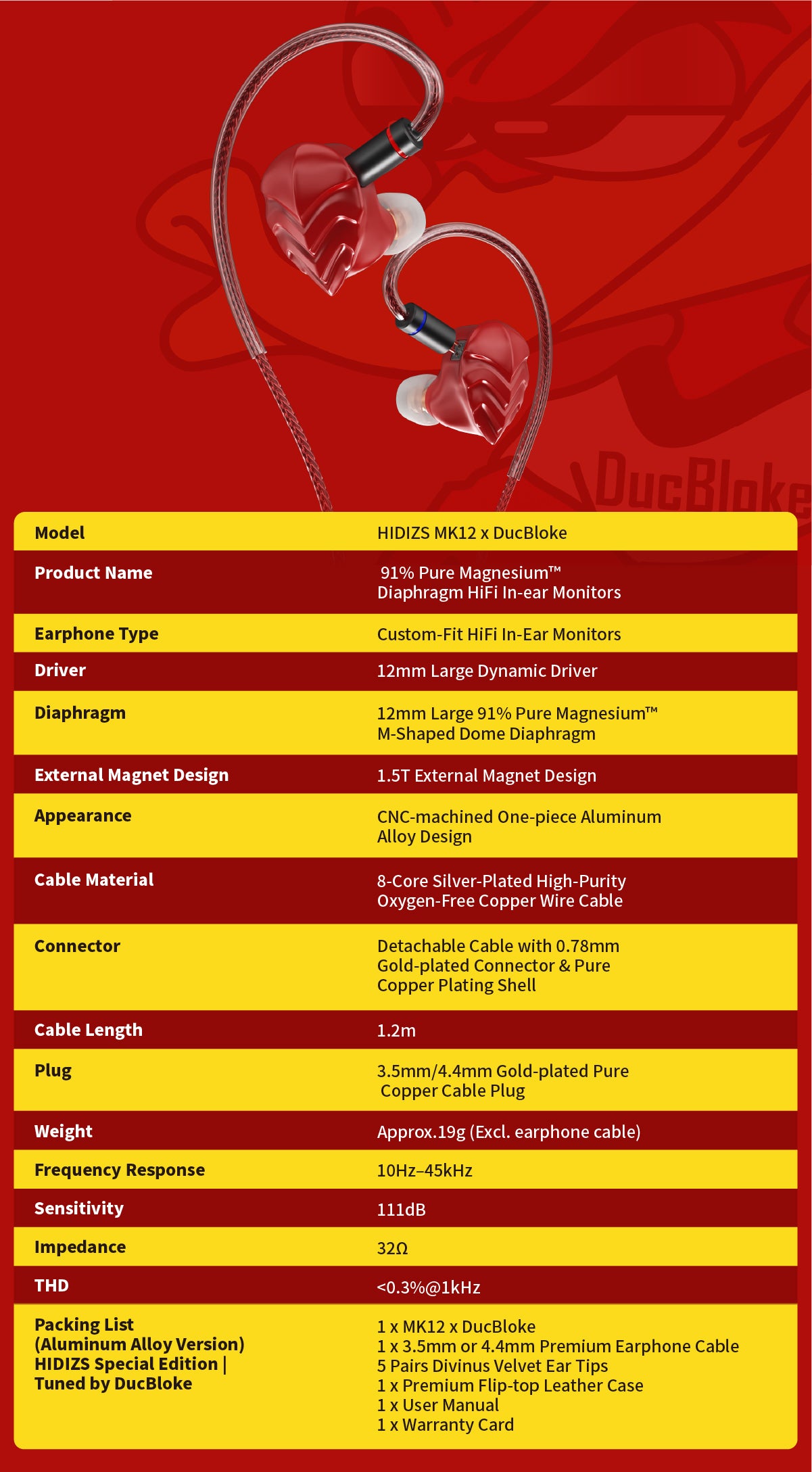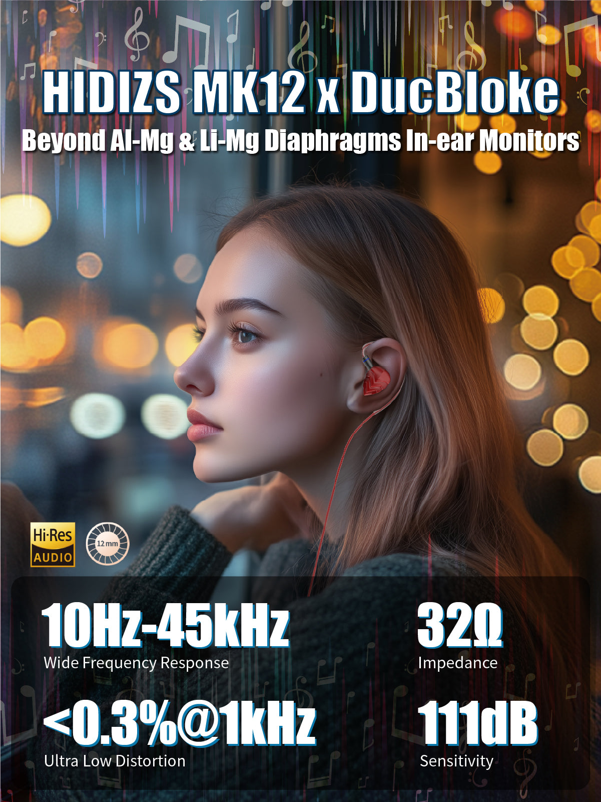 HIDIZS MK12 x DucBloke 12mm 91% Pure Magnesium™ Diaphragm HiFi In-ear Monitors
