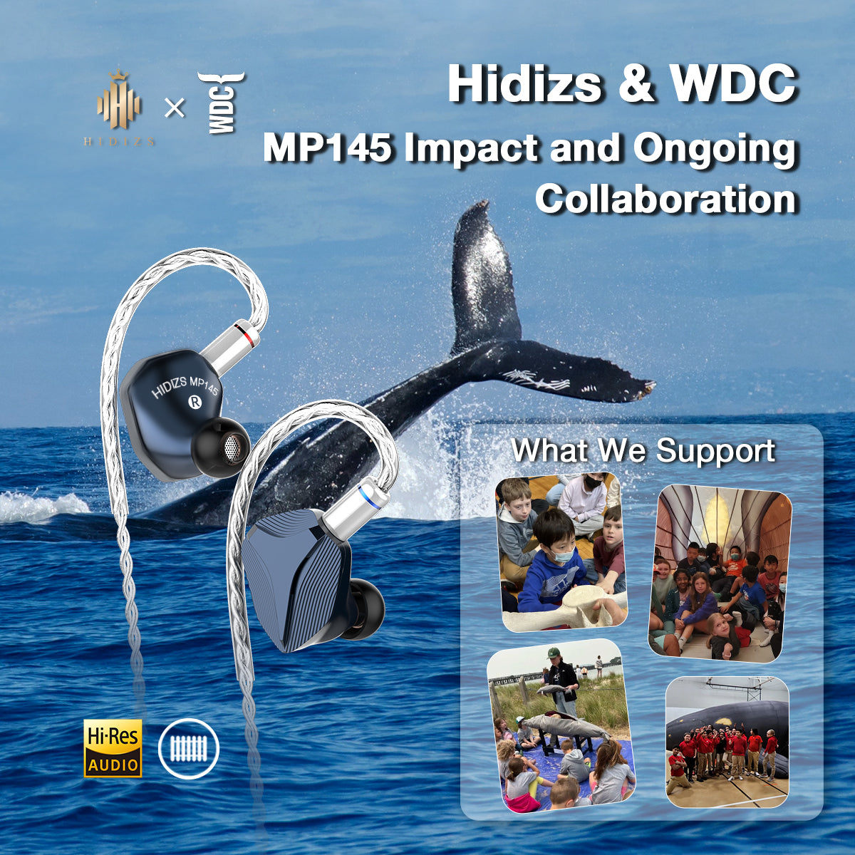 Your contribution, through the purchase of any MP145 product, will directly contribute to WDC's ongoing efforts. We value your support and look forward to making a positive impact on our environment together. If you’d like more information about this partnership, email hello@hidizs.net or contact@whales.org.