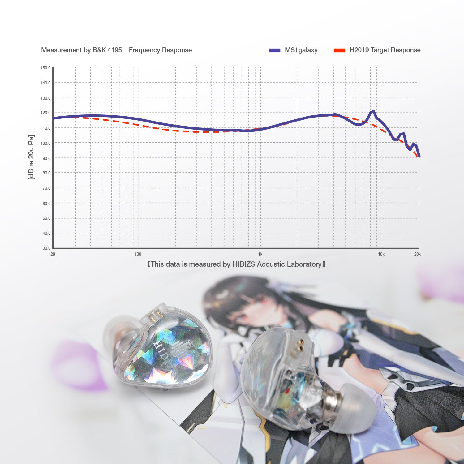 HIDIZS MS1-Galaxy is tuned based on the B&K HATS target frequency response curve, following the H-2019 target Frequency Response curve guidelines. The tuning process is conducted by highly skilled acoustic engineers at the HIDIZS Acoustic Laboratory, involving extensive adjustments and critical listening sessions. This scientific and psychological acoustics fusion results in a perfectly balanced sound signature that delivers an exceptional listening experience. The MS1-Galaxy boasts an incredibly wide full-range frequency response, providing outstanding audio performance across all ranges.