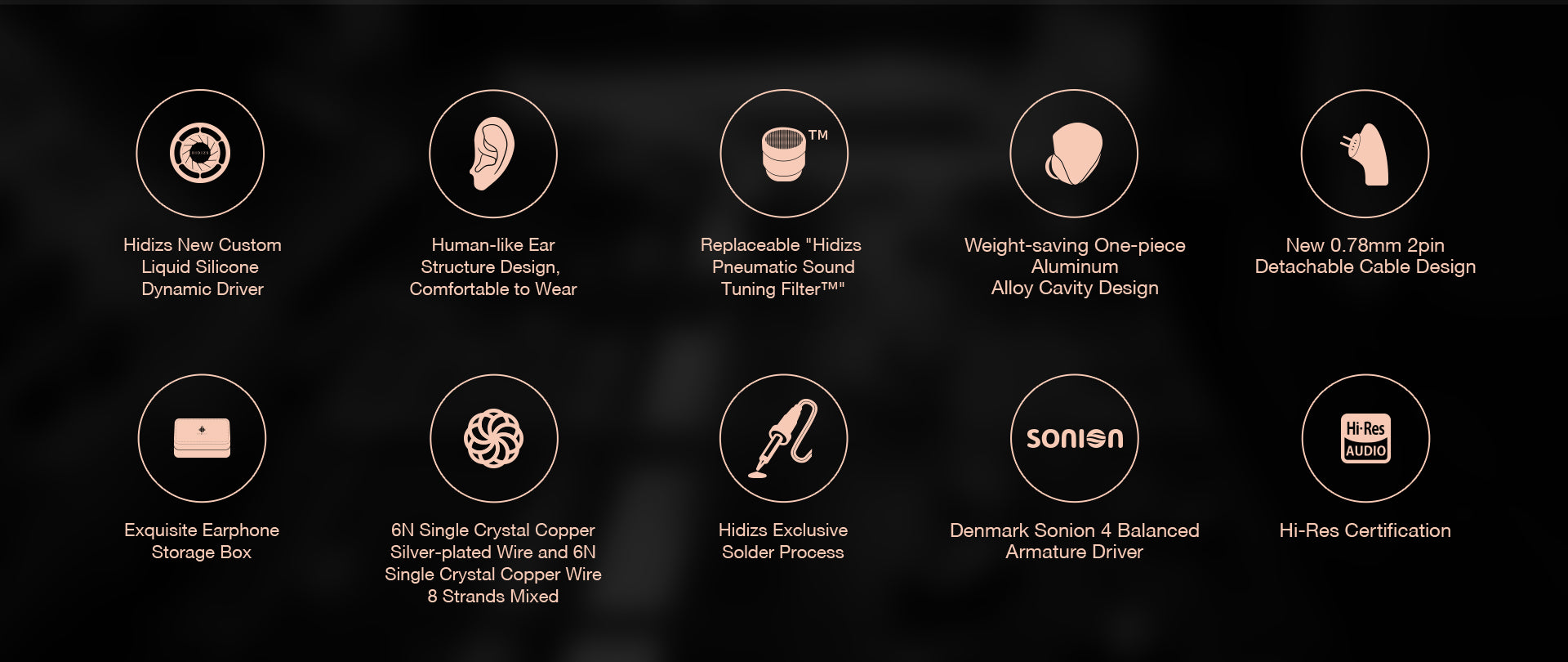 - Replaceable "HIDIZS Pneumatic Sound Tuning Filter™"