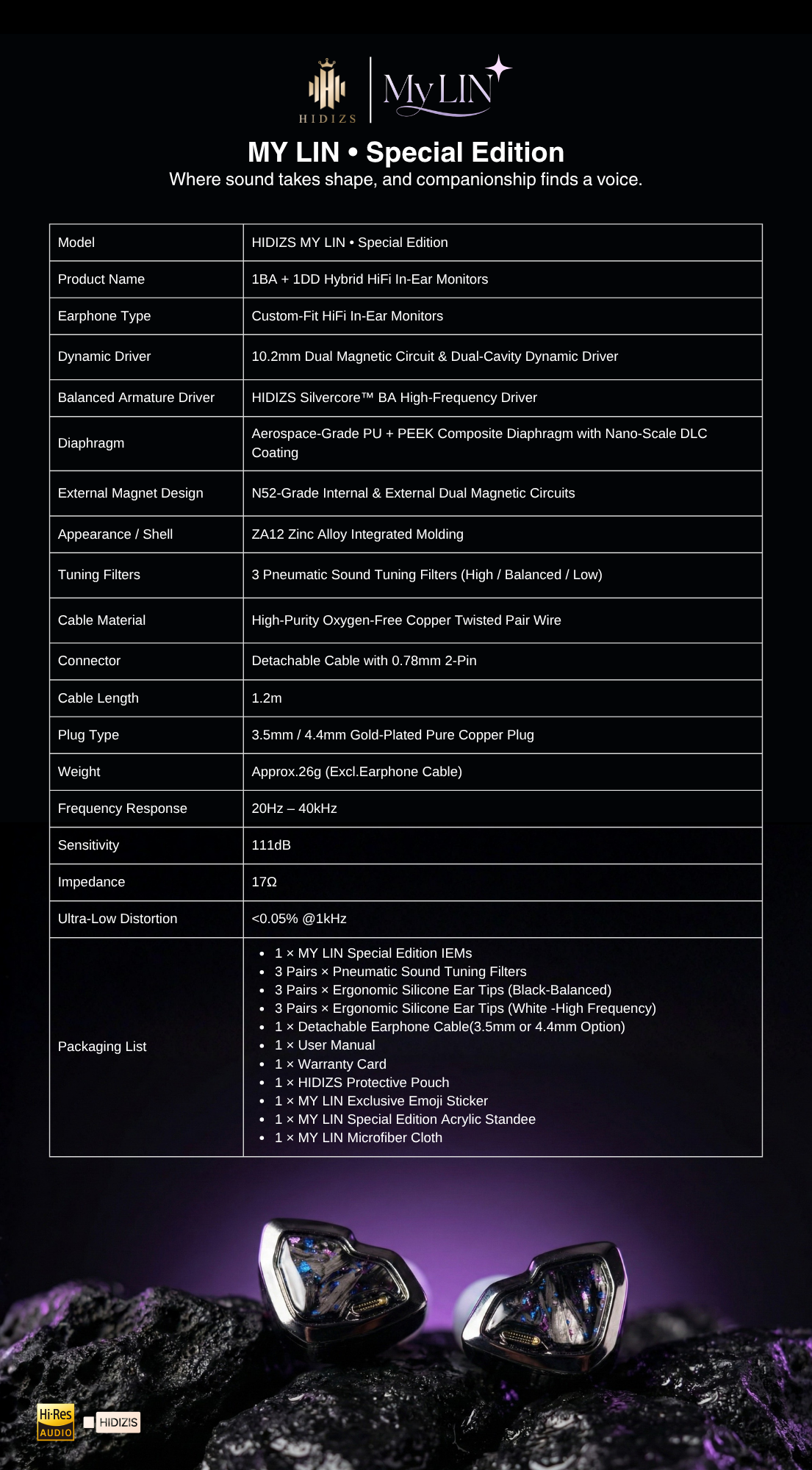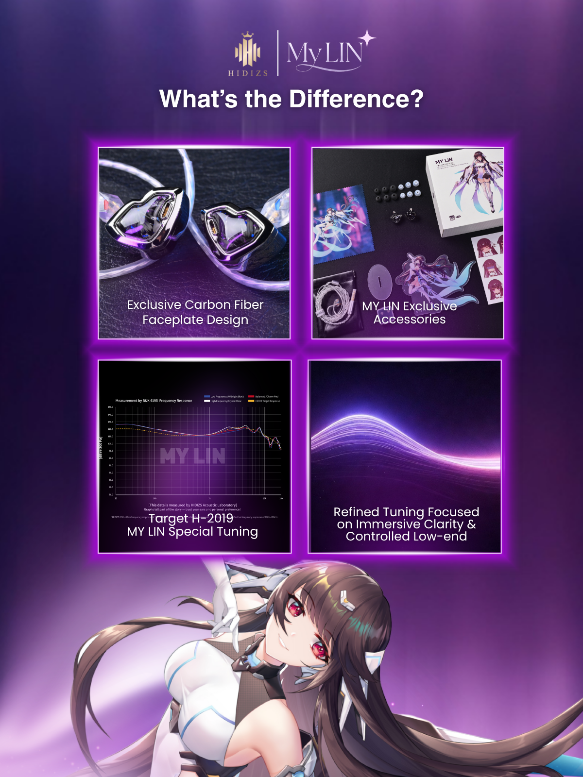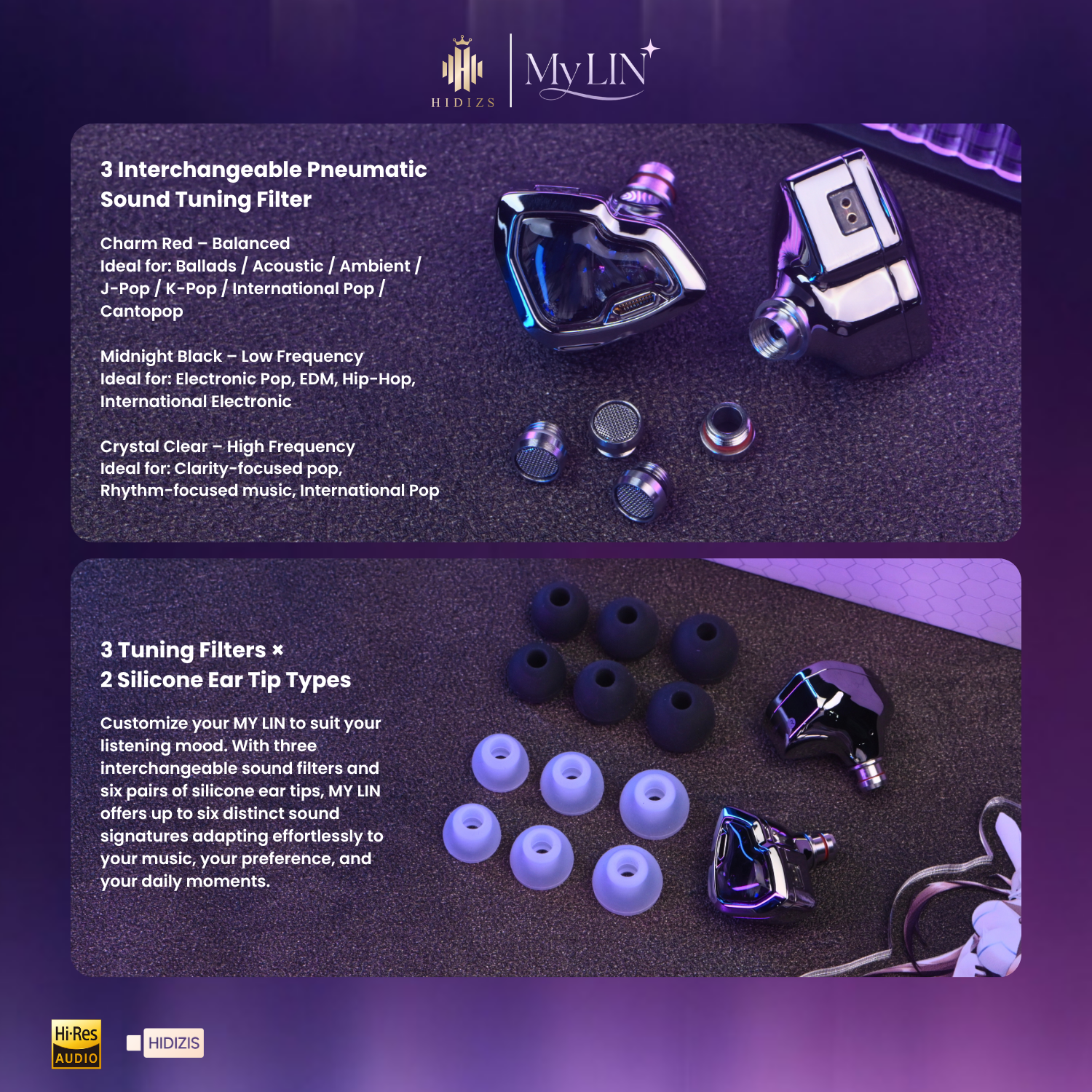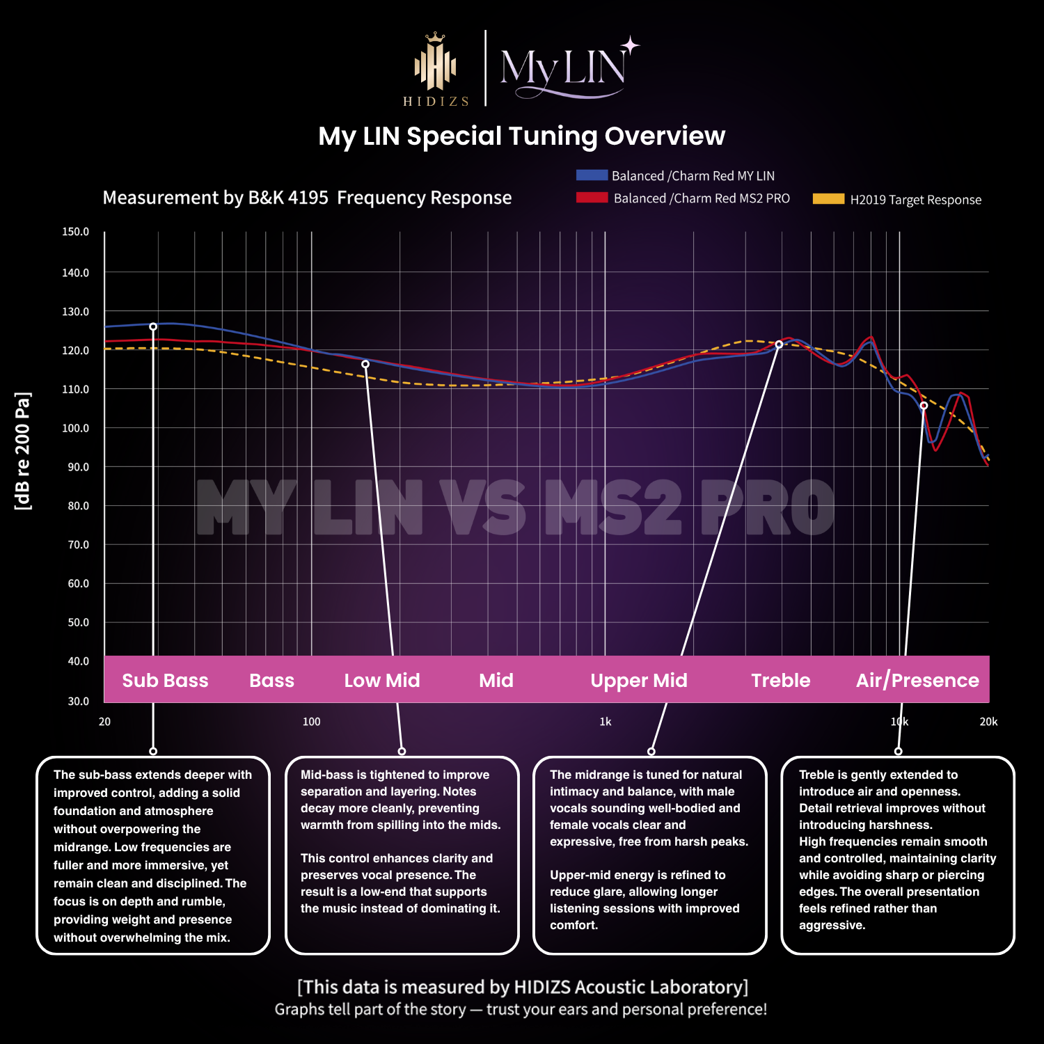 The MY LIN Special Tuning reduces excessive sharpness in the upper-midrange while preserving clarity, offering a more balanced and natural sound.