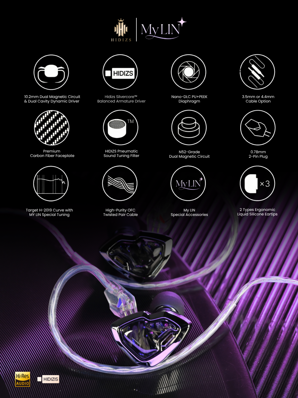 MY LIN combines advanced driver architecture, refined tuning control, and premium materials to create a balanced listening experience. Each component supports clarity, stability, and long-term comfort.
