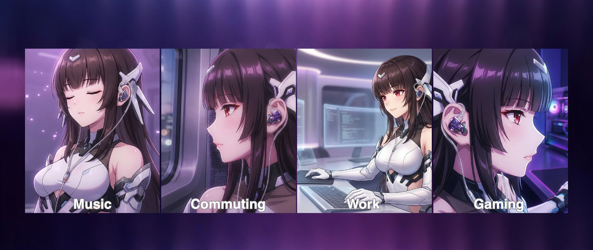 Designed as a companion-type presence, Lin reflects the idea that sound should respond to human emotion. Her character symbolizes a listening experience that feels composed rather than aggressive, expressive without excess, and detailed without fatigue.