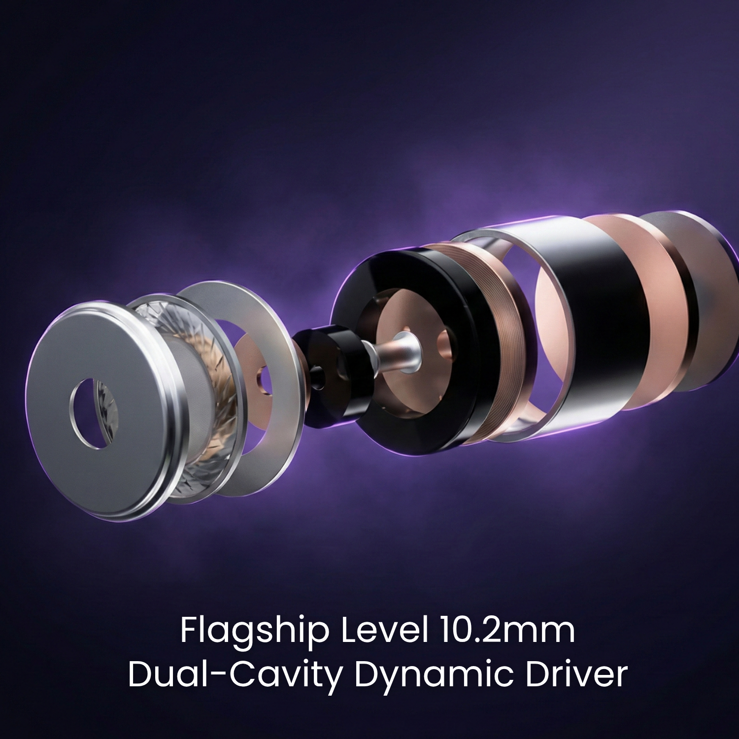 The 10.2mm flagship dual-cavity dynamic driver has been carefully retuned for a more pronounced sub-bass and tightened mid-bass.