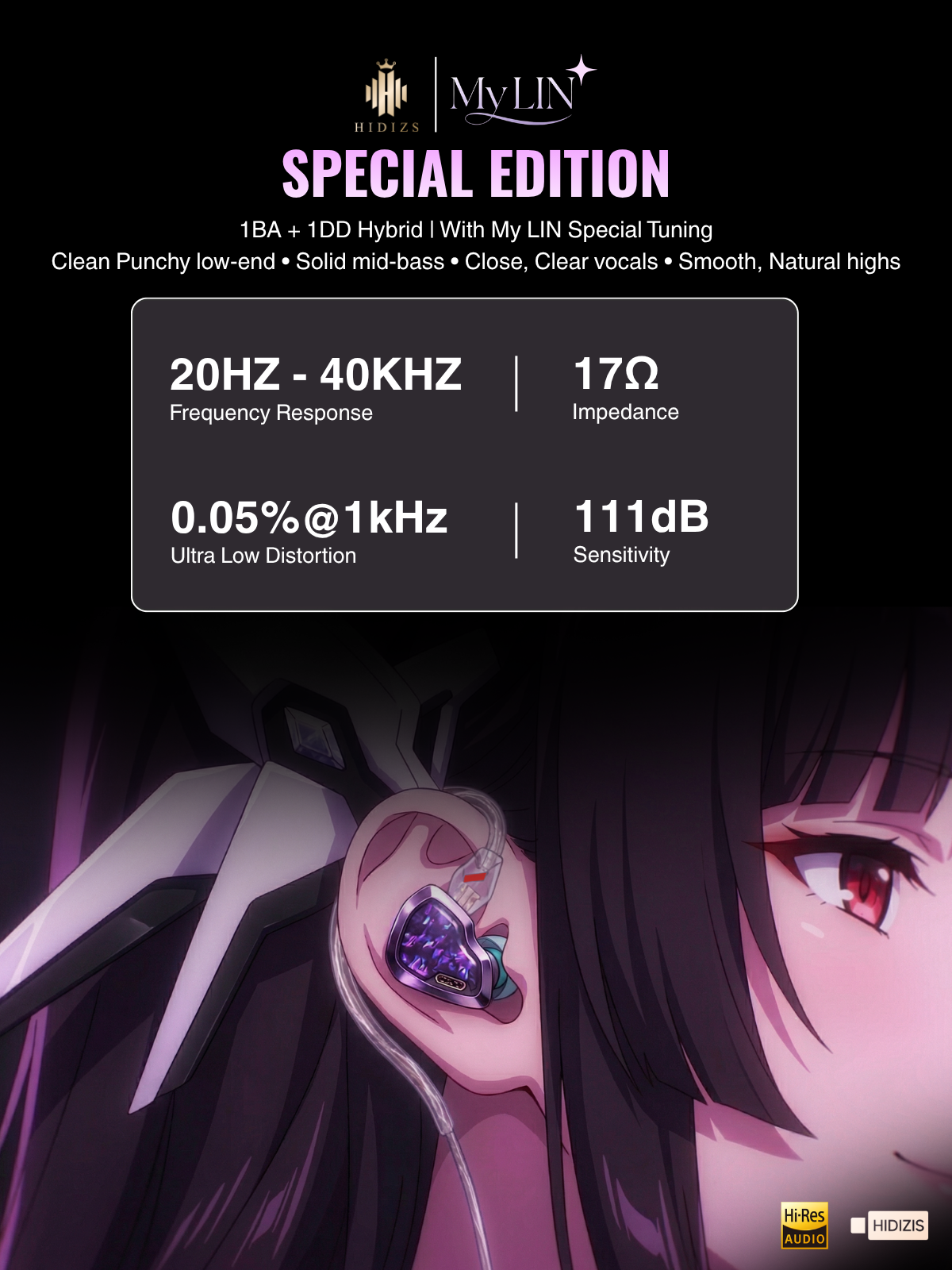 HIDIZS MY LIN • Special Edition 1BA + 1DD Hybrid HiFi In-ear Monitors