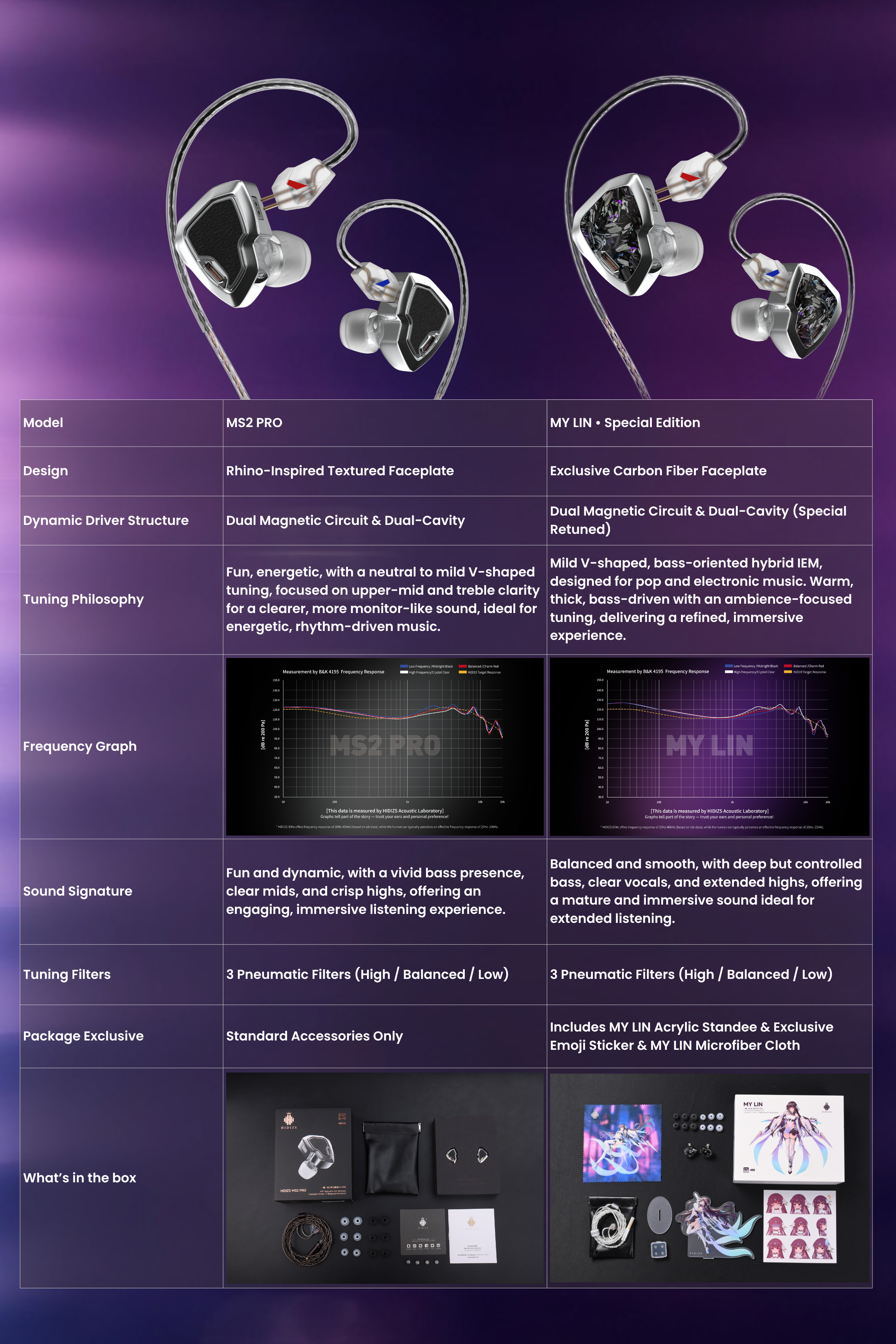 - MS2 PRO: Clarity & Analytical Detail | MY LIN: Smoother, More Immersive & Natural Sound