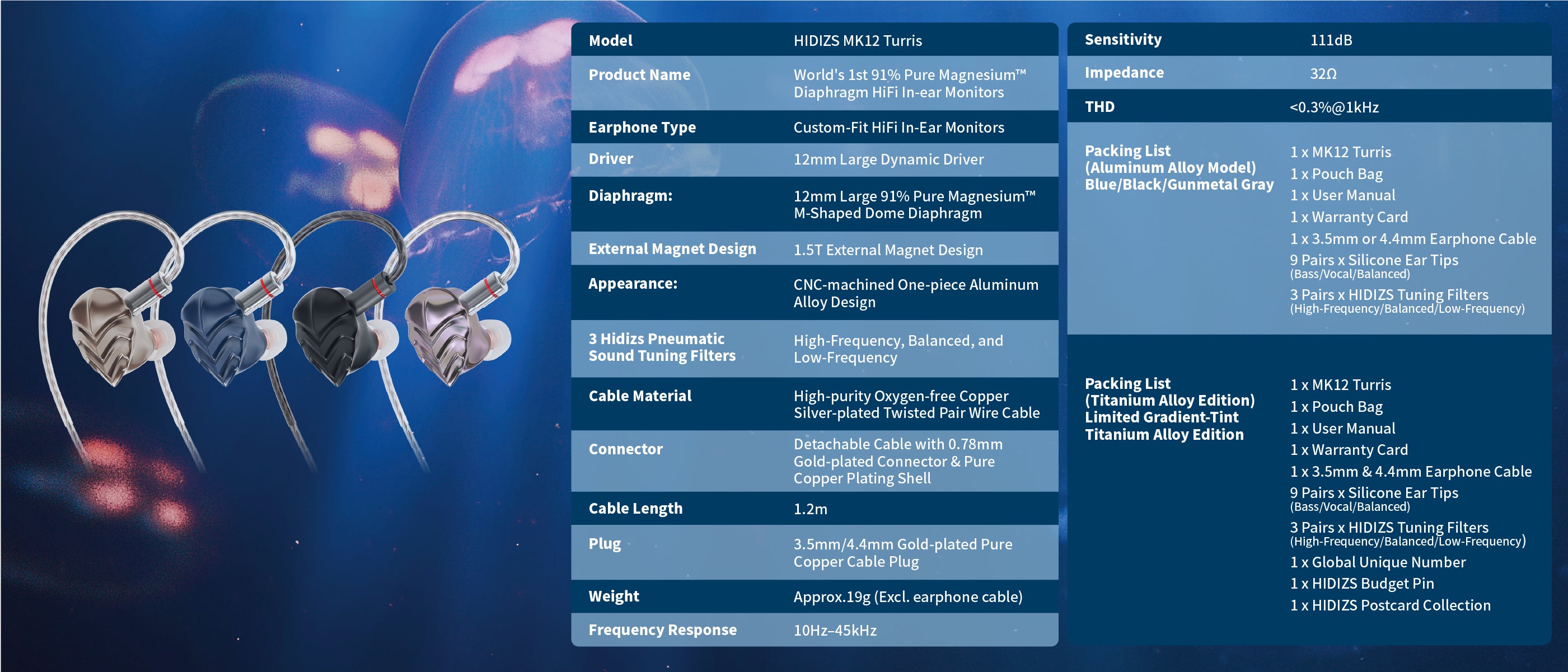The MK12 Turris Gradient-Tint Titanium Alloy Edition is HIDIZS’ boldest leap yet in high-fidelity evolution — fusing two of the most advanced materials in audio engineering: Titanium Alloy and 91% Pure Magnesium™.